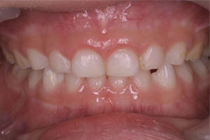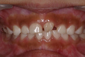 下の写真は健康な乳歯列のお子さんの口の中です。ピンクの歯ぐきに可愛い歯が出ています。下の2枚の写真はお家に喫煙する形がいるお子さんの口の中です。歯ぐきに帯状にヤニがついています。お家やお子さんの前での喫煙は控えめにしましょう