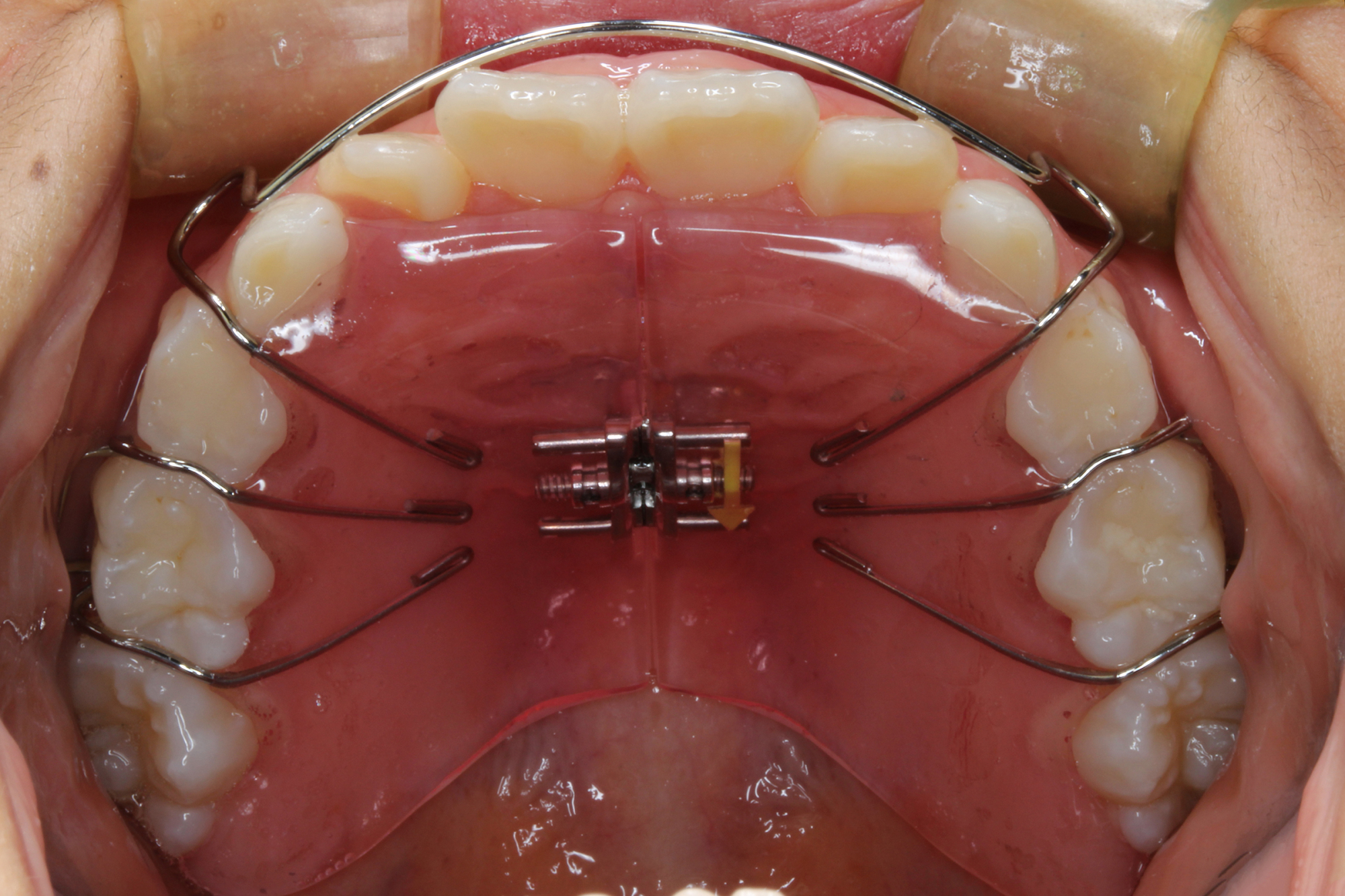 日本で行われている拡大床治療にも色々な方法がありますが当院での特長は最初に永久歯に生え替わる上下4本の前歯を奥歯の生え替わりが始まる前までに顎を拡大してきれいに並べることです。そのため拡大床治療の期間は小学校1年生頃から4、5年生頃までの間に限定しており、それまでに目的が達成できない場合には別の治療法に移行します。またゆっくりスペースを獲得するようにしているのも特長で2週間に1回ネジを回すようにしています。一般的には1週間にⅠ回ないし2回ネジを回すことが多いようです。ゆっくり進めるので一日の装着時間はお家にいるときと寝ている間だけにしています。学校や自宅以外での装着はせずゆっくり拡大していくので治療期間が長くなりますが後戻りは少なく確実になります。治療開始時期が大切ですので時期を逸した場合には拡大床治療は行いません。一般的に拡大床治療の評判が悪いのは開始時期が遅く、いつまでも治療を長引かせ治らないことによるものが多いようです。 拡大床治療はスペースを作って永久歯がならぶスペースを作ることが目標ですので細かい歯の向きや角度まで整えられないこともあります。そんな場合には別の矯正治療が必要になります。