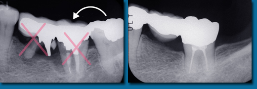 抜かなければならない歯のかわりに親知らずなどの歯を移し替えることができます。抜けた歯と移植する歯のサイズが同じくらいでないと上手くいきませんが、必要のない親知らずを有効に使うことのできるとても良い治療法です。移植ができるかどうかは色々と調べなければならないことが多いのですが、歯が抜けてしまった場合の一つの選択肢としていつも移植が可能かどうかを考えるようにしています。元々の自分の歯ですので移植が成功した場合の自然な感じや噛み心地の良さはインプラントなどとは比べものになりません。