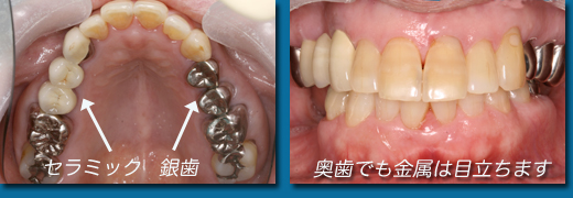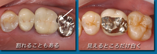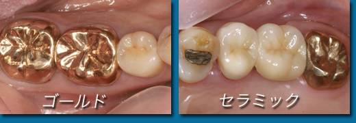 奥歯にはものを噛む大切な役割があります。人間の噛む力には個人差がありますが自分の体重くらいの力が一本の歯にかかるので壊れないことが大切です。また自分の歯は年齢とともにすり減っていくのであまり硬すぎる歯が一本だけあってもバランスが取れません。壊れにくさでは金属が丈夫であり見た目の良いセラミック系は割れることがあります。硬さではセラミック系、保険の銀、ゴールド系の順番で硬くゴールド系の冠が最も自分の歯に近い硬さです。