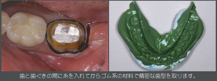 須貝歯科医院で歯を入れたことのある方は歯型の取り方が他の歯科医院と違ったと感じたかも知れません。歯型を取る材料には寒天系のものとゴム系のものがあります。ゴム系の物の方が精度が良いのですが操作が面倒だったりコストがかかったりで使用している歯科医院は少ないようです。須貝歯科医院ではほとんどのケースでゴム系の材料を使用しています。より鮮明に歯型が取れるように事前に歯と歯ぐきの間に細い糸を入れたりもします。患者さんには硬化するのに時間がかかり苦しかったり痛かったりし、我々にも手間やコストがかかったりで大変なことばかりですが精度の高い詰め物や被せ物を作るためにどうしても必要なステップと考えています。