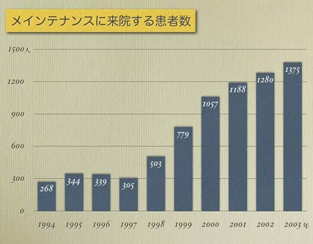 須貝歯科医院では治療を行うことだけでなく治療が終わってからのメインテナンスを重要に考えています。せっかく治療して良い状態になってもその状態が長く続かなければ何もなりません。毎日の歯ブラシだけでなくプロのメインテナンスも重要です。治療が終わったほとんどの患者さんはメインテナンスプログラムに入っていただきそれぞれの患者さんに合わせた間隔でメインテナンスに来院してもらい担当の衛生士が管理しています。定期的に来院する患者さんは年々増えてきていますが「痛みがなくなったらもう来たくない」という患者さんも少なからずいます。どんなことにも共通することですが手入れが良いのと悪いのとでは「持ち」はかなり違ってしまいます。