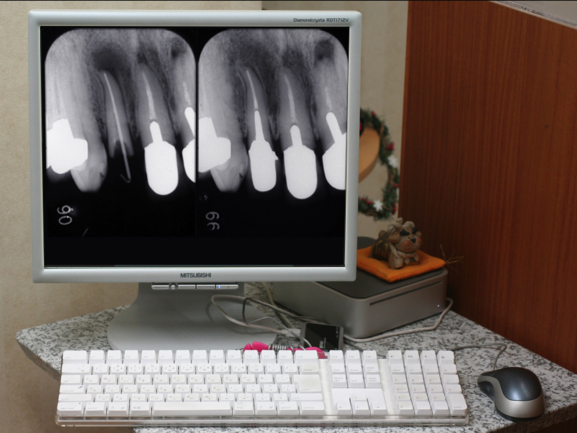 歯科医院でレントゲンを撮って説明を受けたことがあると思います。歯科のレントゲンフィルムは小さくてよくわからなかったという方が多いのではないでしょうか。レントゲンフィルムの種類や撮影法、現像法には多くの種類がありそれによって画像の鮮明度には差がでてきます。須貝歯科医院ではレントゲン診断にこだわり鮮明な画像が得られるようにシステムを整えています。また撮影されたレントゲンはパソコンのモニター上に拡大し、素人の患者さんが見てもわかるようしています。