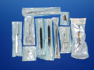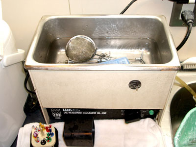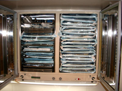 使用済みの機器は手洗いの後、超音波洗浄機で洗浄後滅菌バックに入れられて高圧蒸気滅菌器にかけられます。
