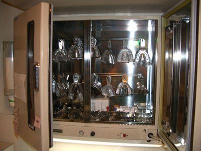 滅菌が済んだ器材を保存する殺菌灯のついた専用の戸棚